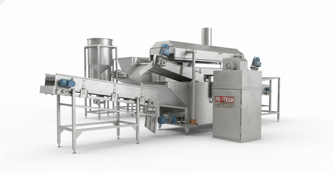 - Continuous Fryer: A long SS 304 tank with a dual-belt