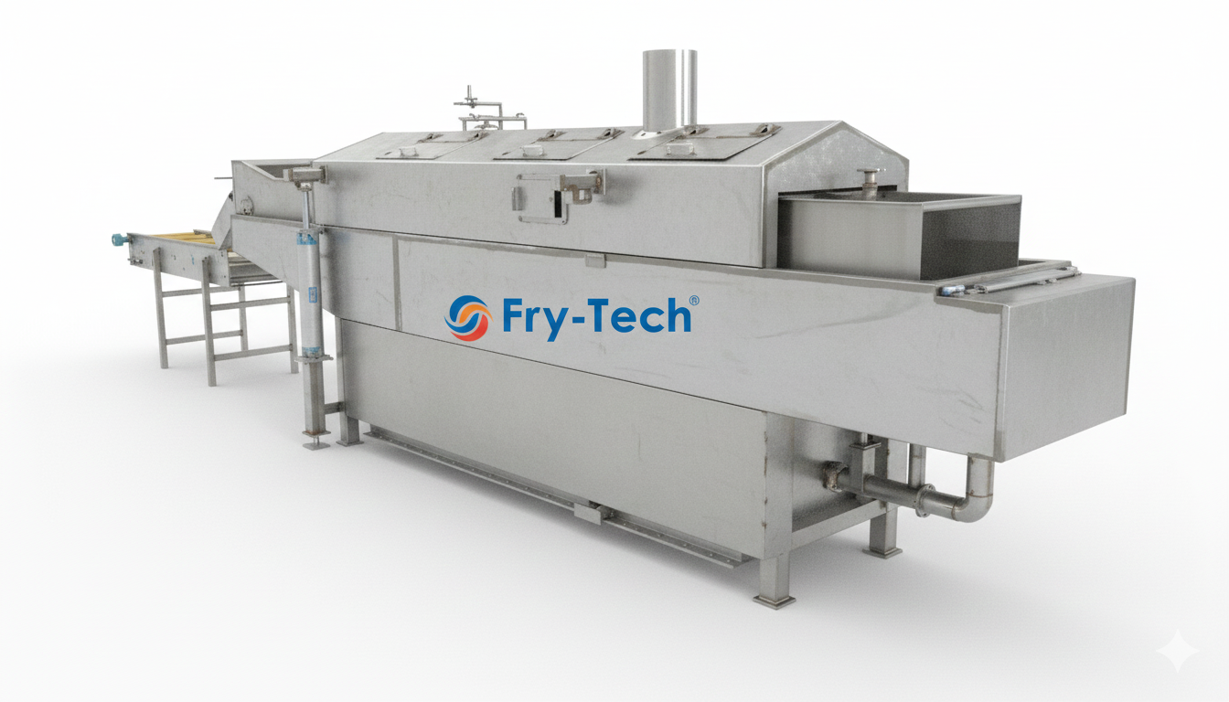 Frying (Double Belt): As bread sticks are light, they float. This machine