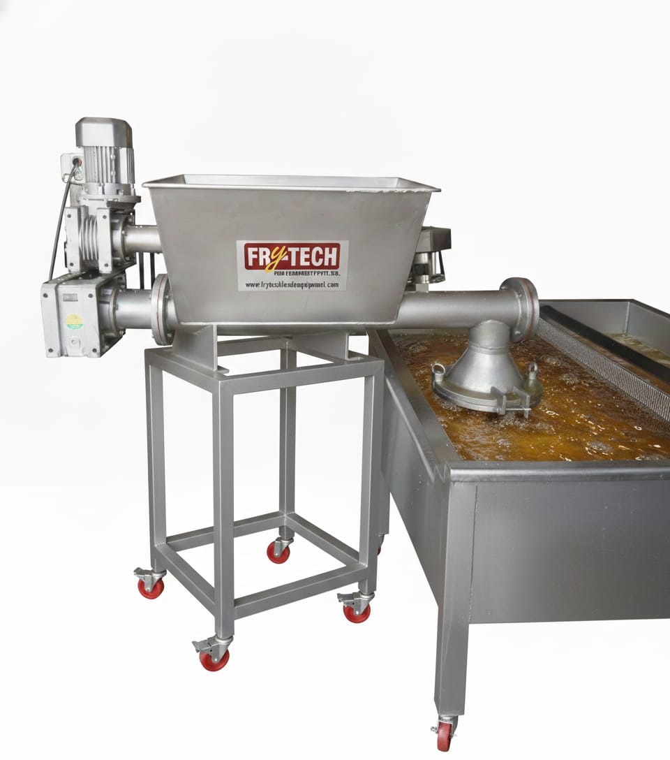 synchronize the extrusion speed with the speed of your continuous fryer.
