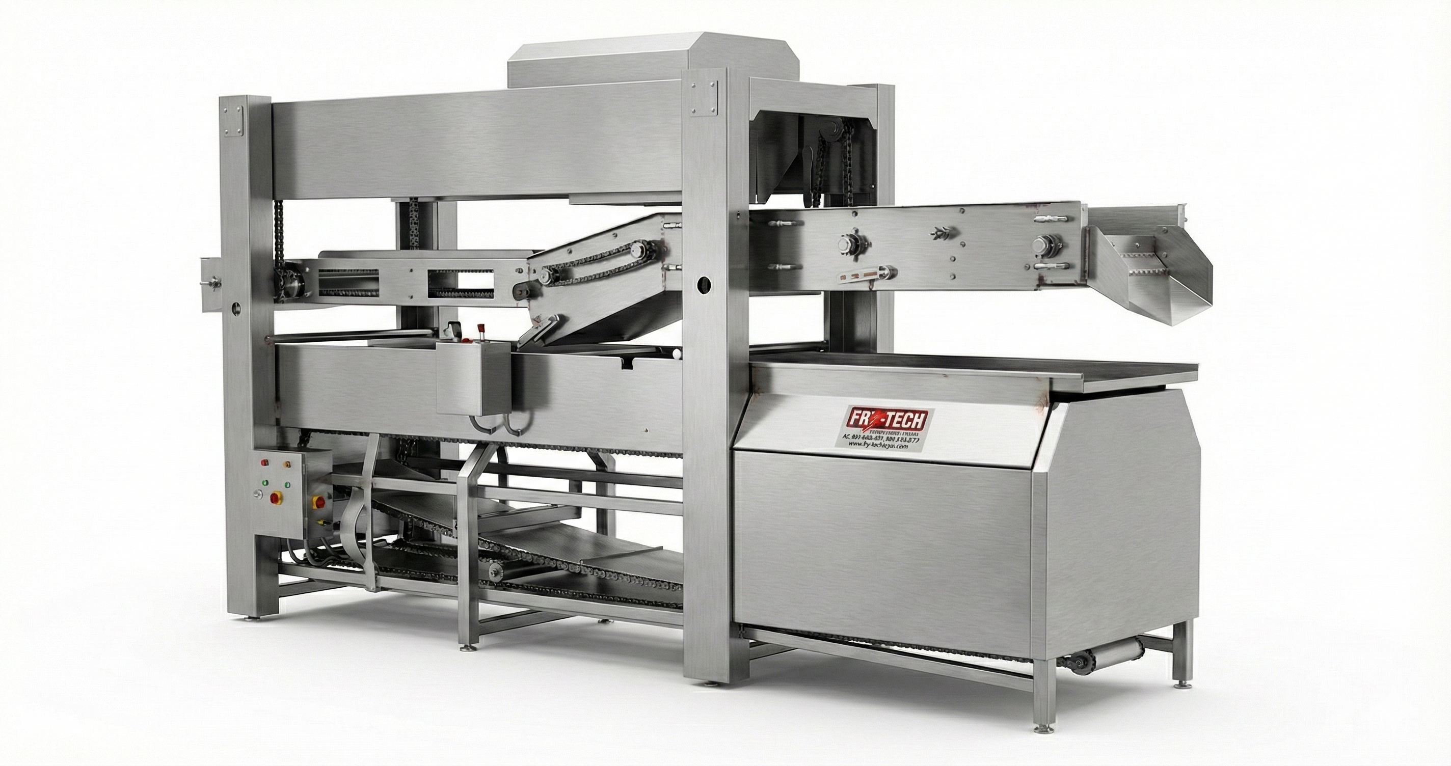 System: For the 500+ kg/hr models, the entire conveyor belt and hood lift