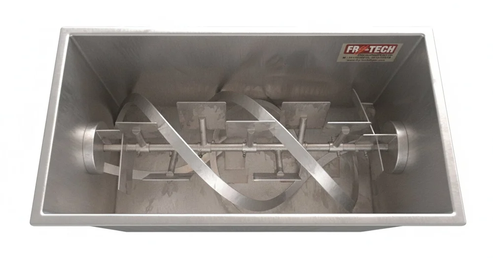 The main shaft of the FRY-TECH MIXER series mixer usually uses two sets of opposite inner and outer double-layer spiral belts to quickly mix materials during operation. The material is simultaneously pushed towards the center of the cylinder by the outer spiral belt and pushed towards the cylinder by the inner spiral belt.