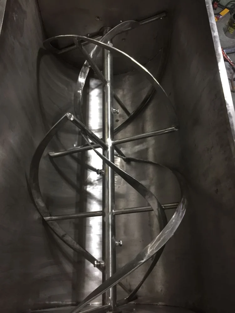 Push on both sides of the body to form a circulating and alternating convection, ultimately achieving a mixed effect. For materials with poor fluidity, a scraper structure (patented design) designed by Shenyin Group can be added to both ends of the spindle to solve the problem of dead corners in traditional horizontal screw belt mixers. Turn on the machine to ensure that the material is pushed towards the center of the cylinder by the outer spiral belt, ensuring a clean discharge.