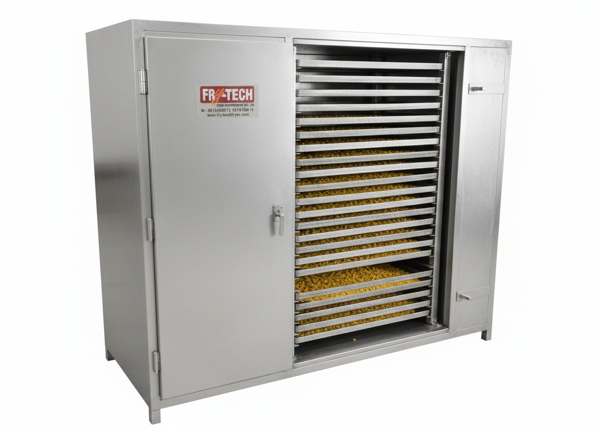 - Airflow: Large dryers (96+ trays) use cross-flow air circulation